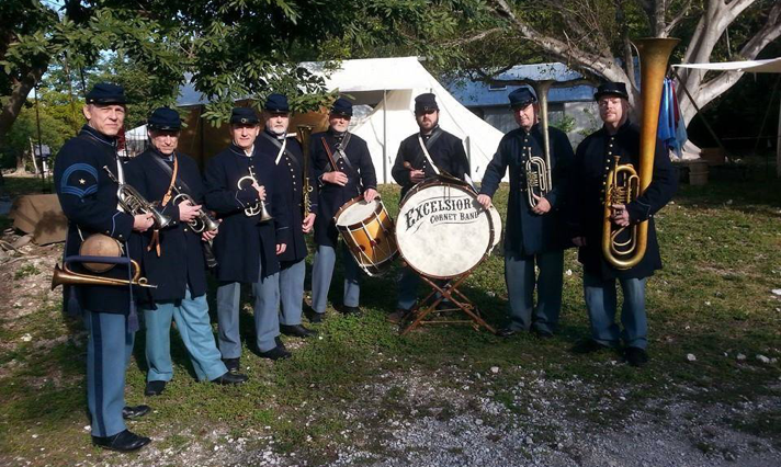 On February 6-8, 2015, the Excelsior Cornet Band performed in Key West, FL, at Fort Zachary Taylor, representing the 47th Pennsylvania Regimental Band. Five of our Upstate NY contingent were able to make the trip, augmented by several of our extremely capable Florida friends including Michael O’Connor, leader of the recreated Coates Brass Band/47th PA Regiment Band. Any excuse to go to Florida in February, even if we did have to wear wool!